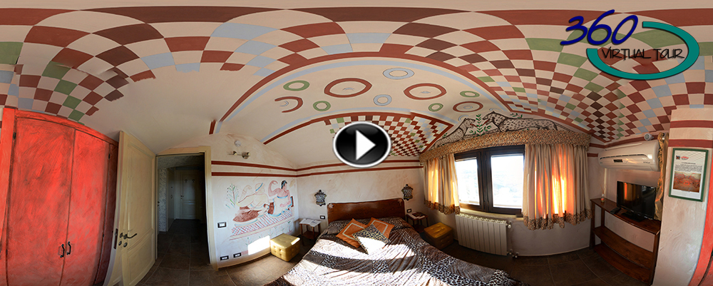 Gli affreschi della tomba dei Leopardi rappresentano le icone della cultura etrusca nel Mondo. Le scene di banchetto con servitori nudi, suonatori di flauto e danzatori sono universalmente conosciute e assunte a simbolo della concezione gioiosa della vita che avevano gli Etruschi. Questa stanza riproduce, nella struttura architettonica interna e persino nelle dimensioni, la camera originale visitabile presso la necropoli di Monterozzi di Tarquinia. Vi abbiamo riprodotto il soffitto, con scacchiera policroma e columen(trave centrale) decorato a cerchi concentrici e il timpano con i leopardi contrapposti che danno il nome all'ambiente.